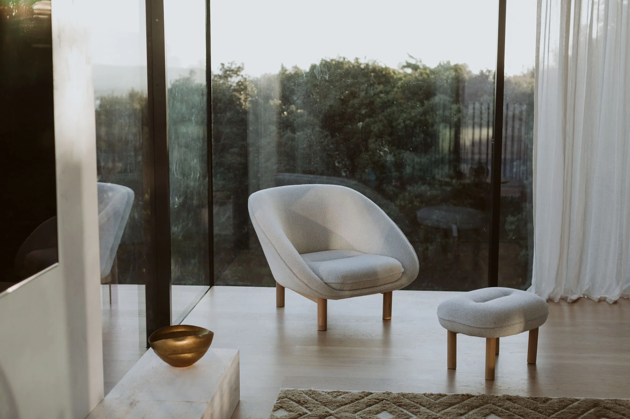 As always, texture comes to play to create a sense of warmth. I chose a sheer linen curtain fabric ‘James Dunlop Laconia Air, colour Linen’, and Prestige CMT made our curtains.