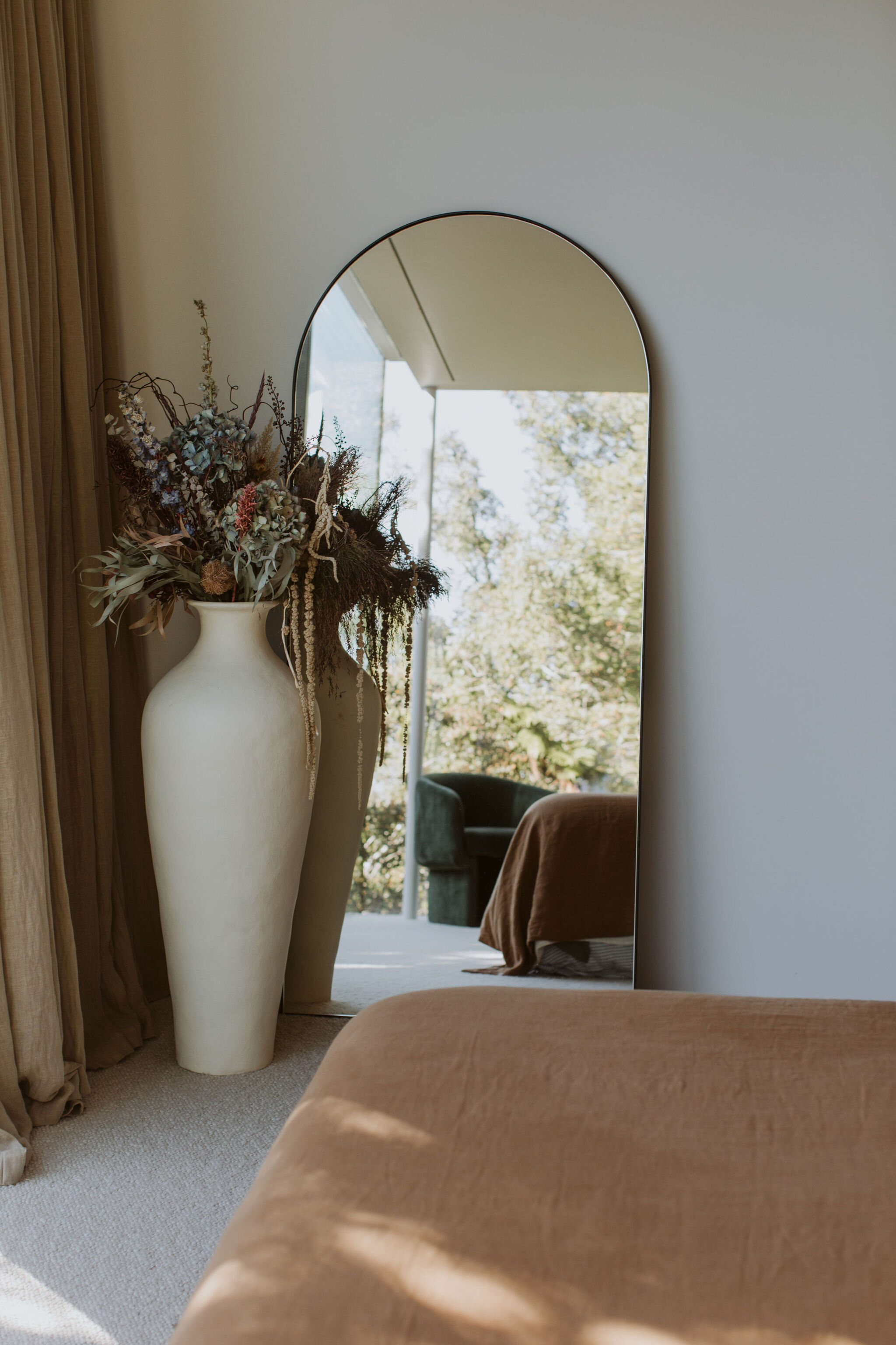 We chose netural colours throughout, and highlights of khaki and rust tones that pair naturally with the surroundings.